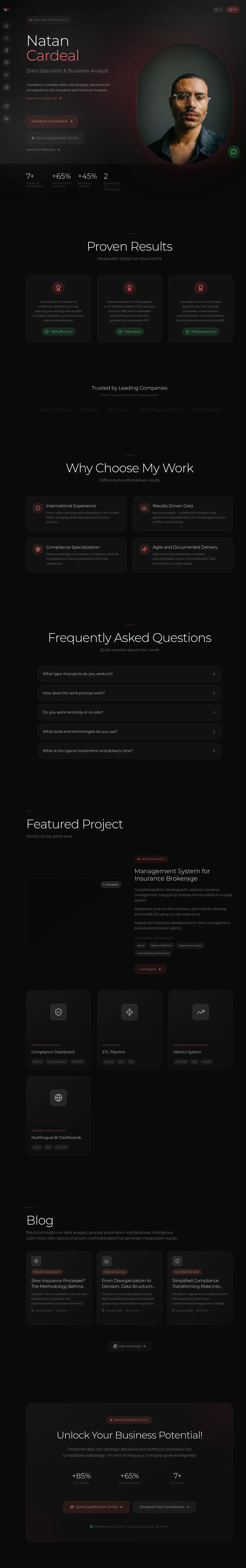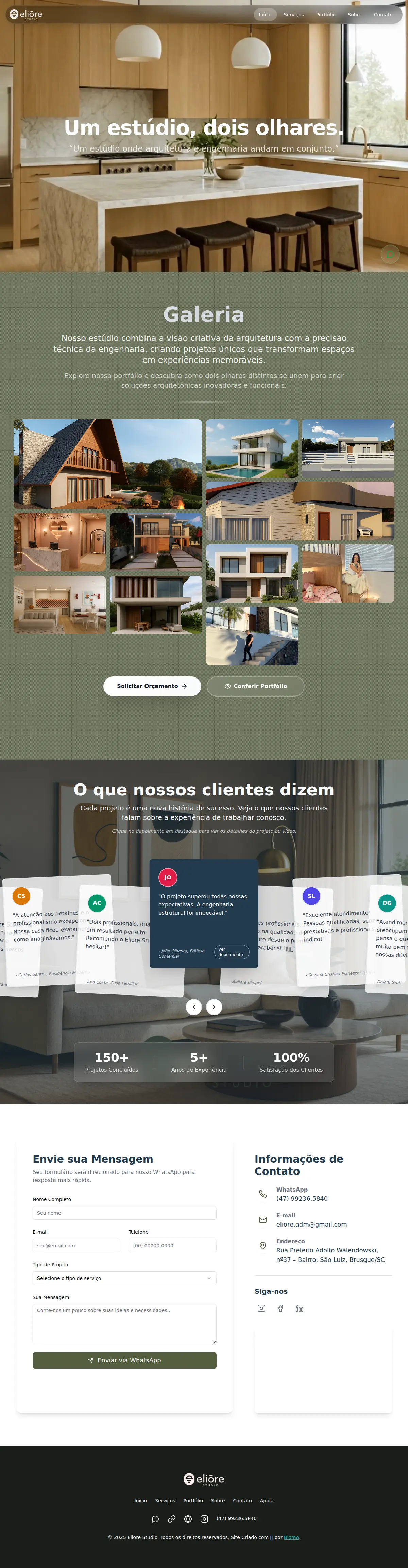Site institucional elegante para consultoria de engenharia com portfólio de projetos e depoimentos.